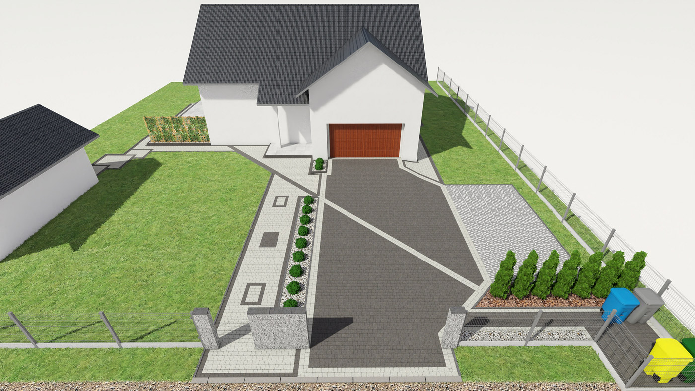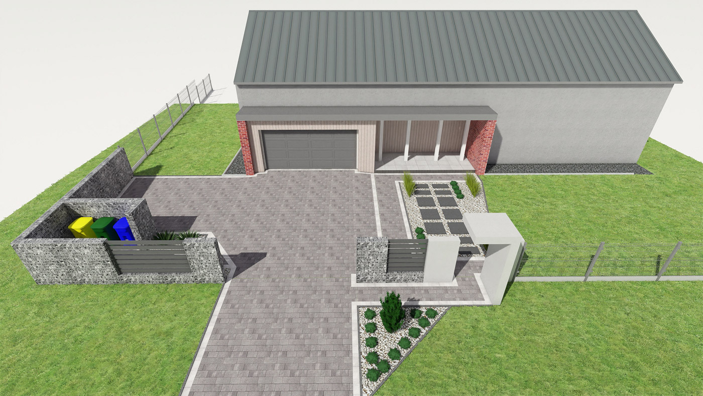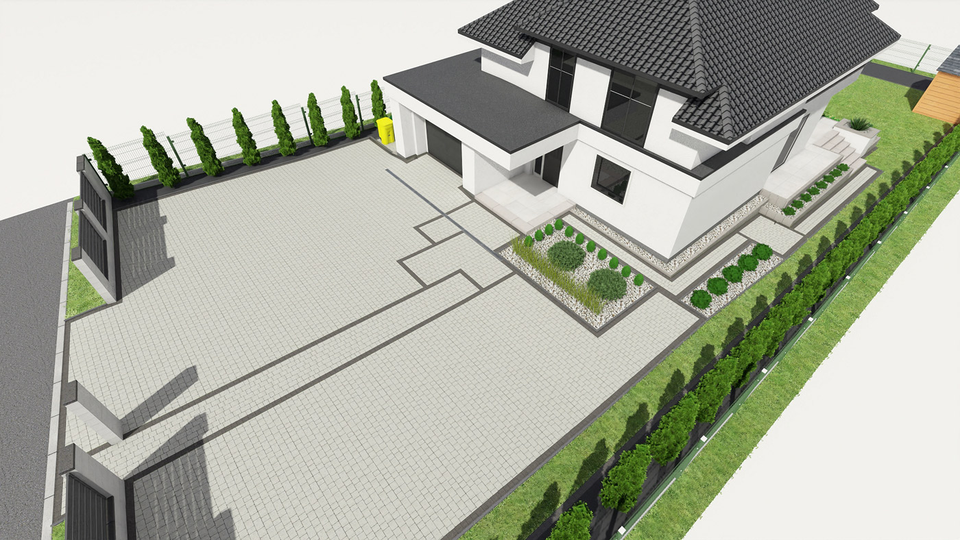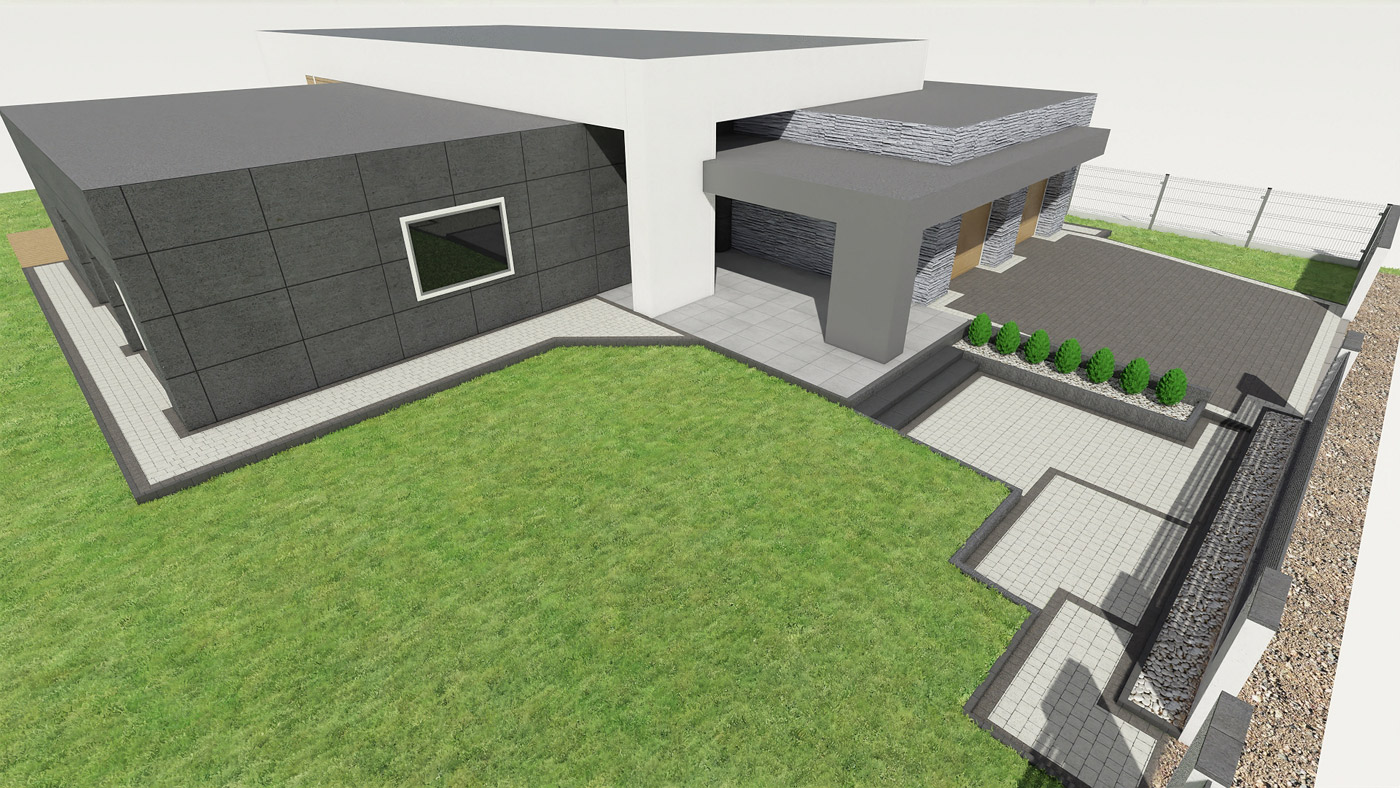Usługi obejmują projektowanie elewacji, ogrodzeń i nawierzchni w tym tarasu, wjazdu na posesję, miejsca parkingowego, chodników i wszystkiego co związane jest z wygodnym użytkowaniem i komunikacją w obrębie Twojej działki i domu.