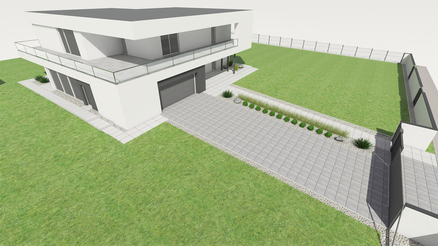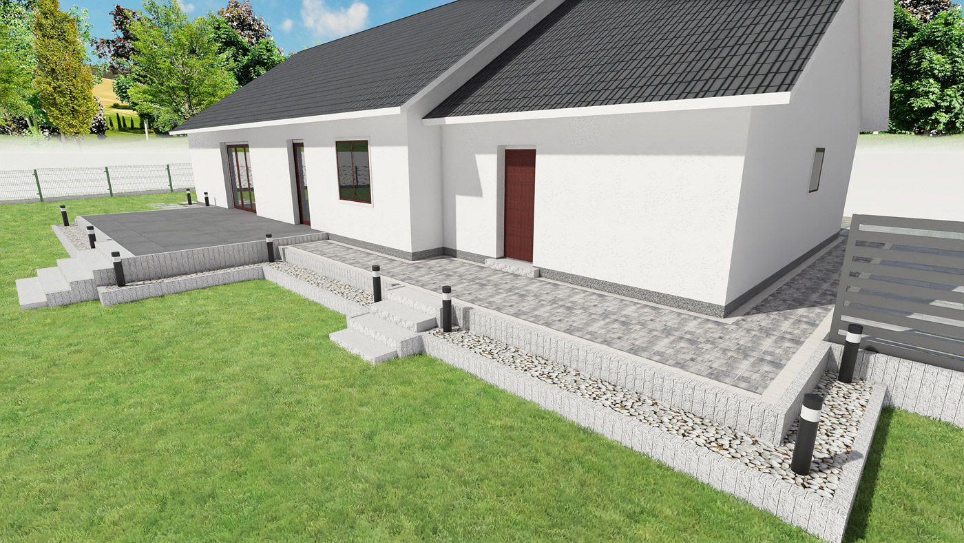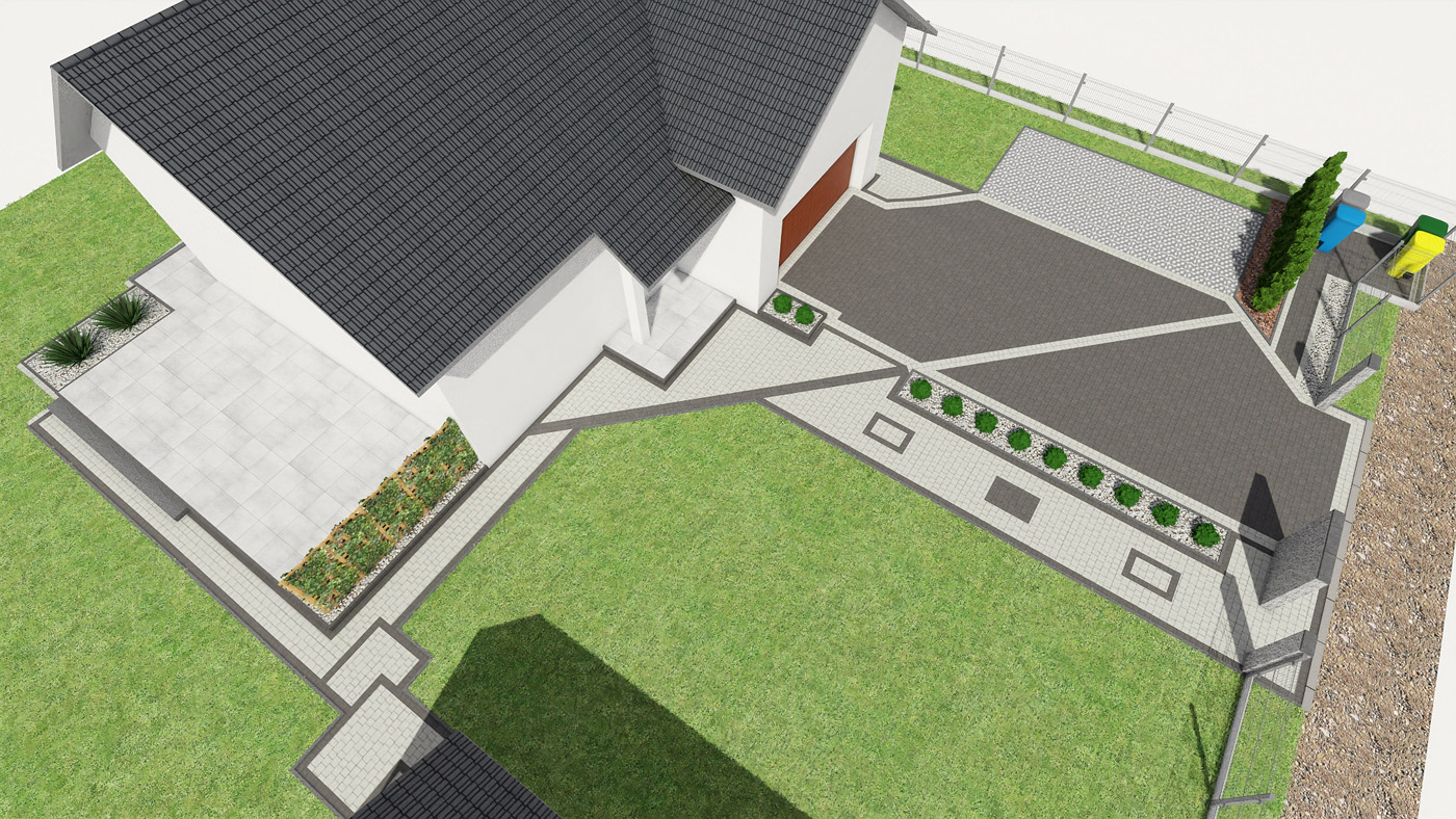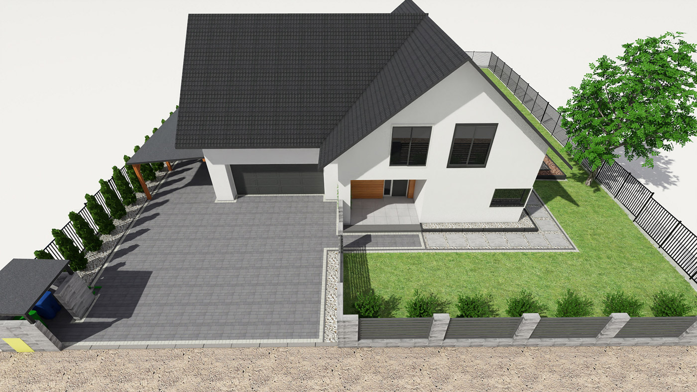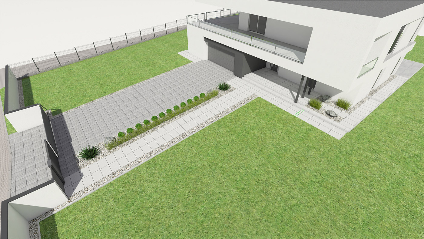 Usługi obejmują projektowanie elewacji, ogrodzeń i nawierzchni w tym tarasu, wjazdu na posesję, miejsca parkingowego, chodników i wszystkiego co związane jest z wygodnym użytkowaniem i komunikacją w obrębie Twojej działki i domu.