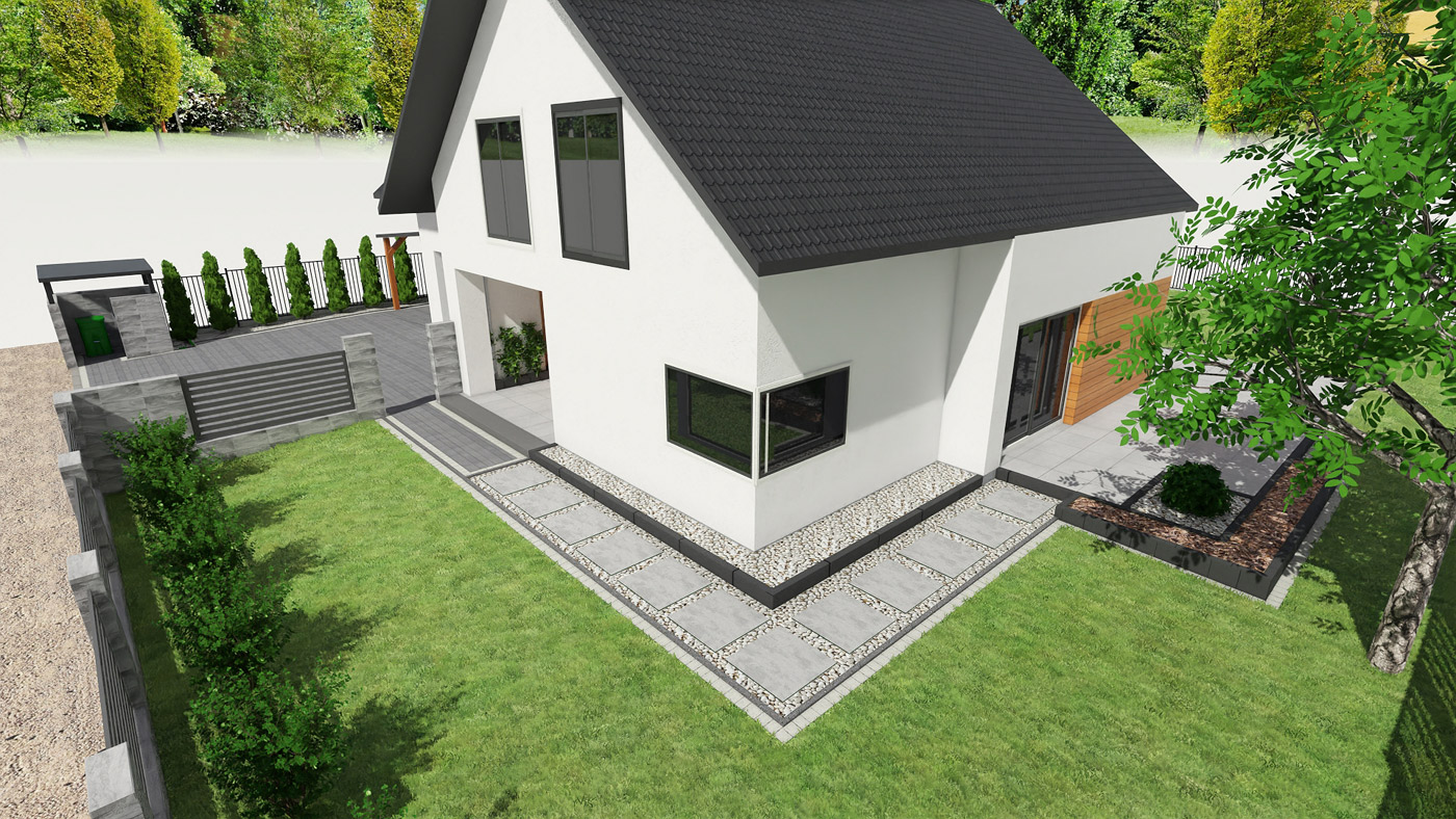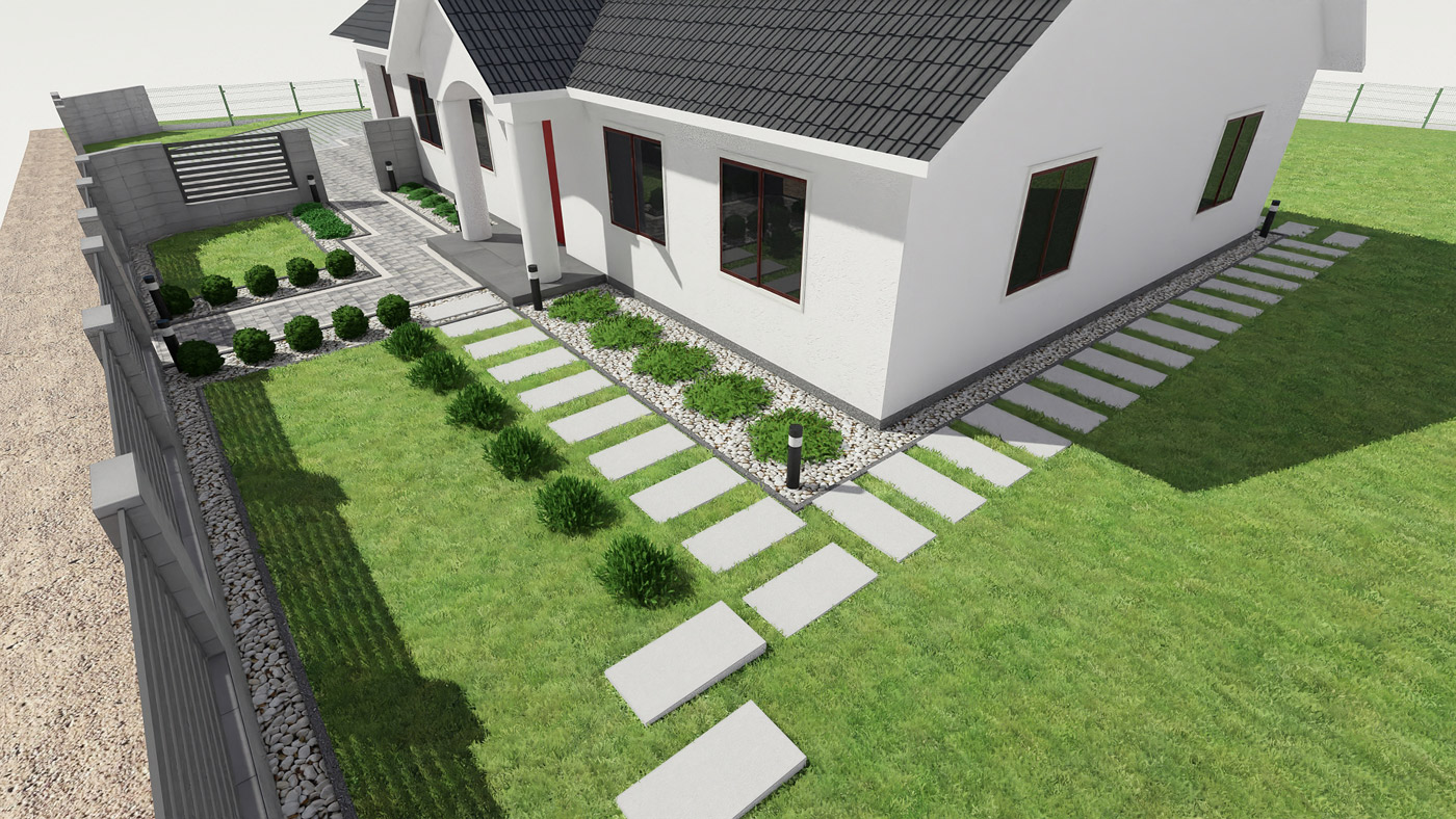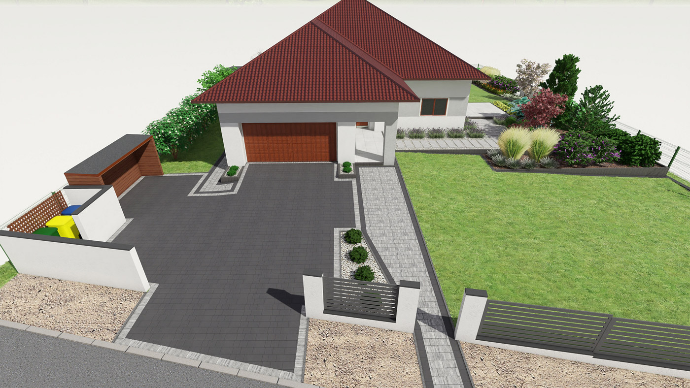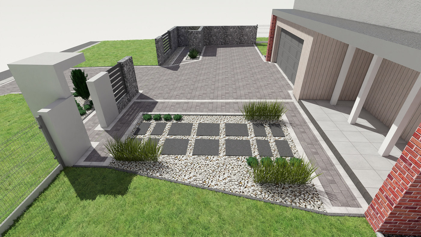 Usługi obejmują projektowanie elewacji, ogrodzeń i nawierzchni w tym tarasu, wjazdu na posesję, miejsca parkingowego, chodników i wszystkiego co związane jest z wygodnym użytkowaniem i komunikacją w obrębie Twojej działki i domu.