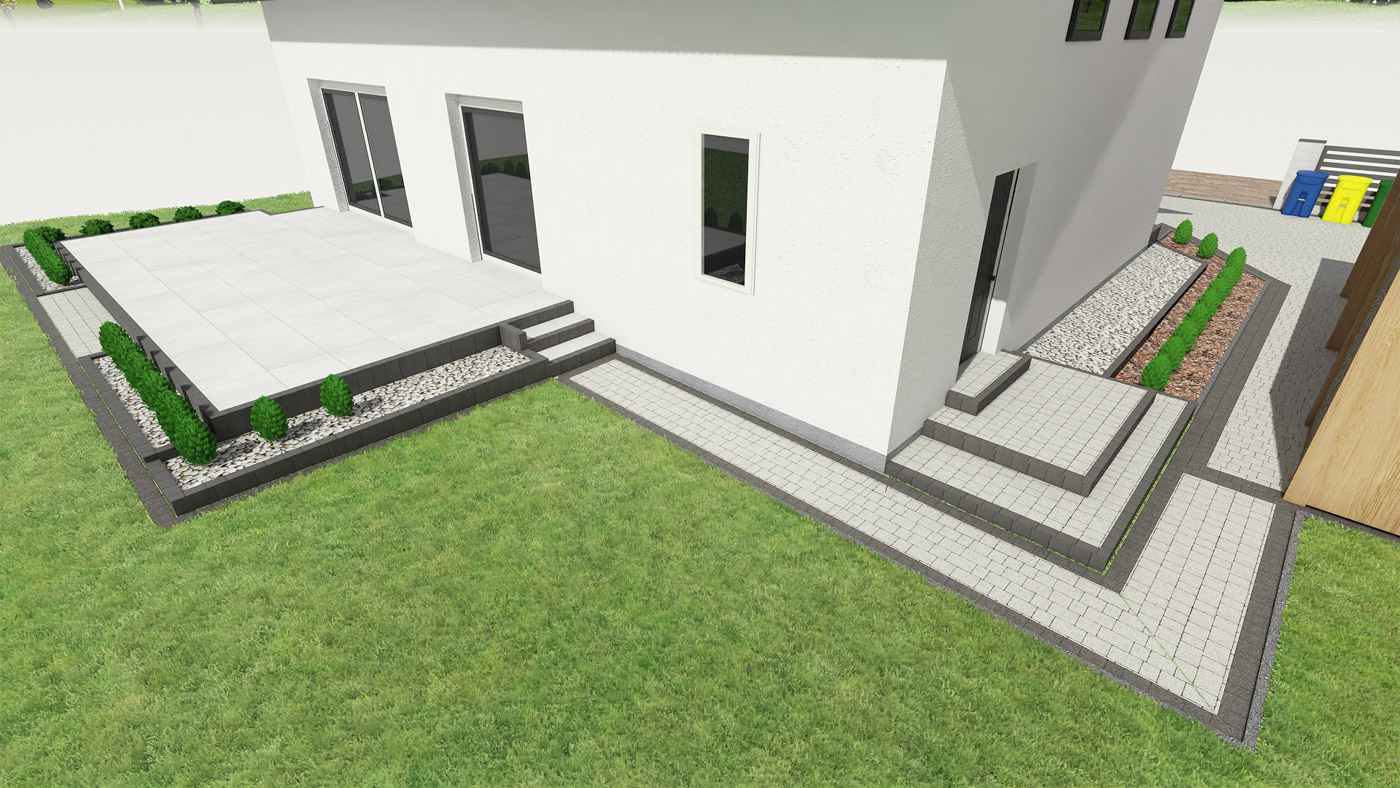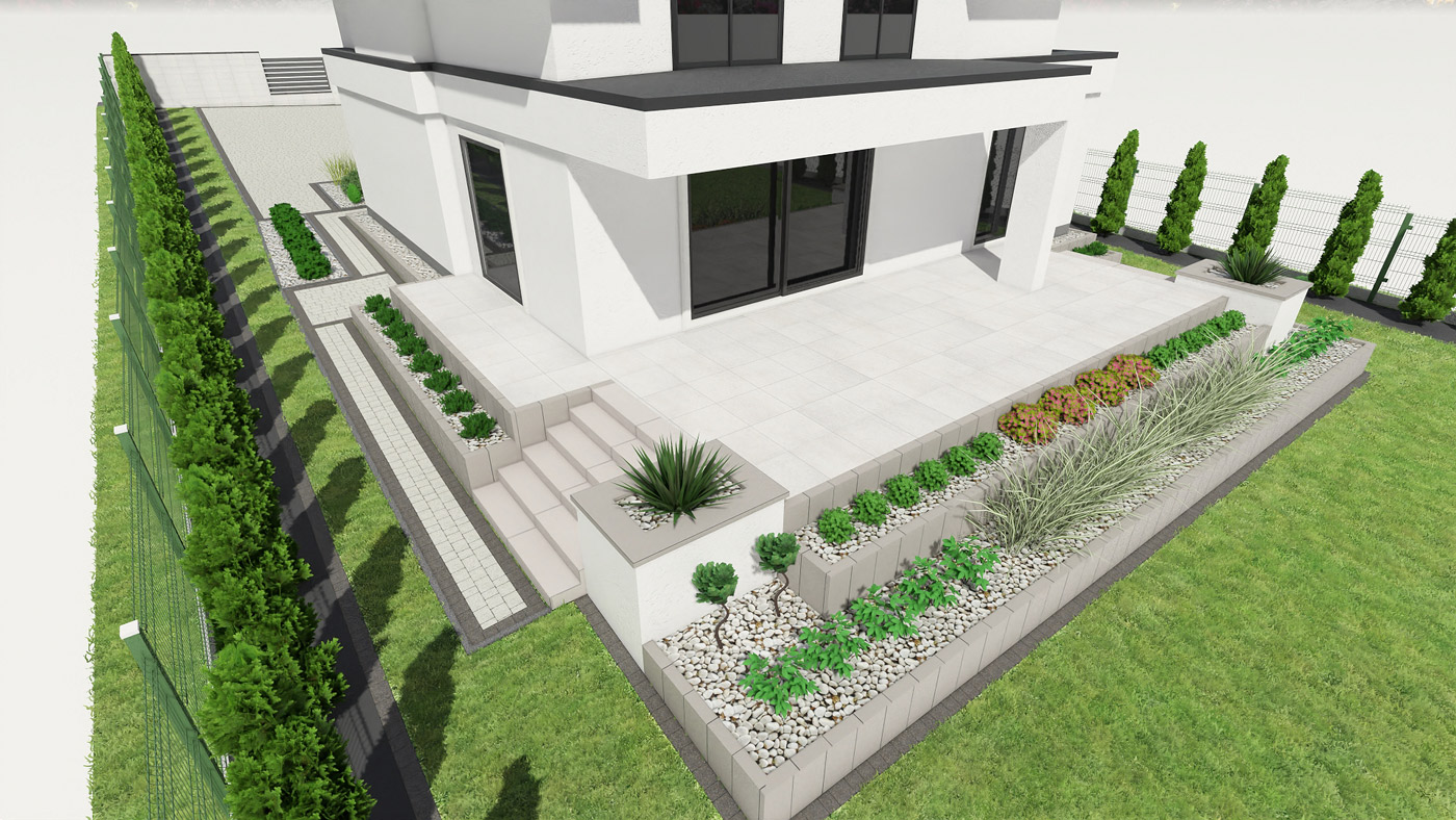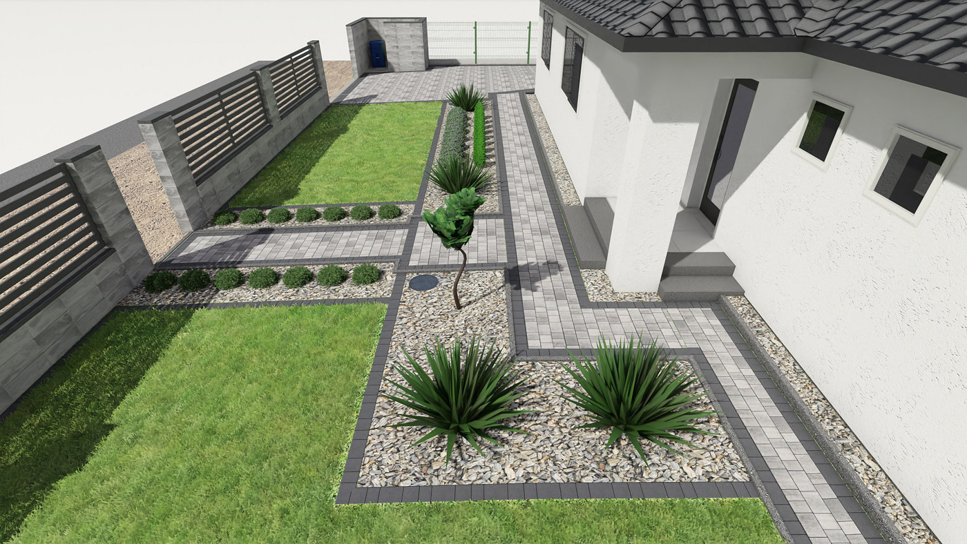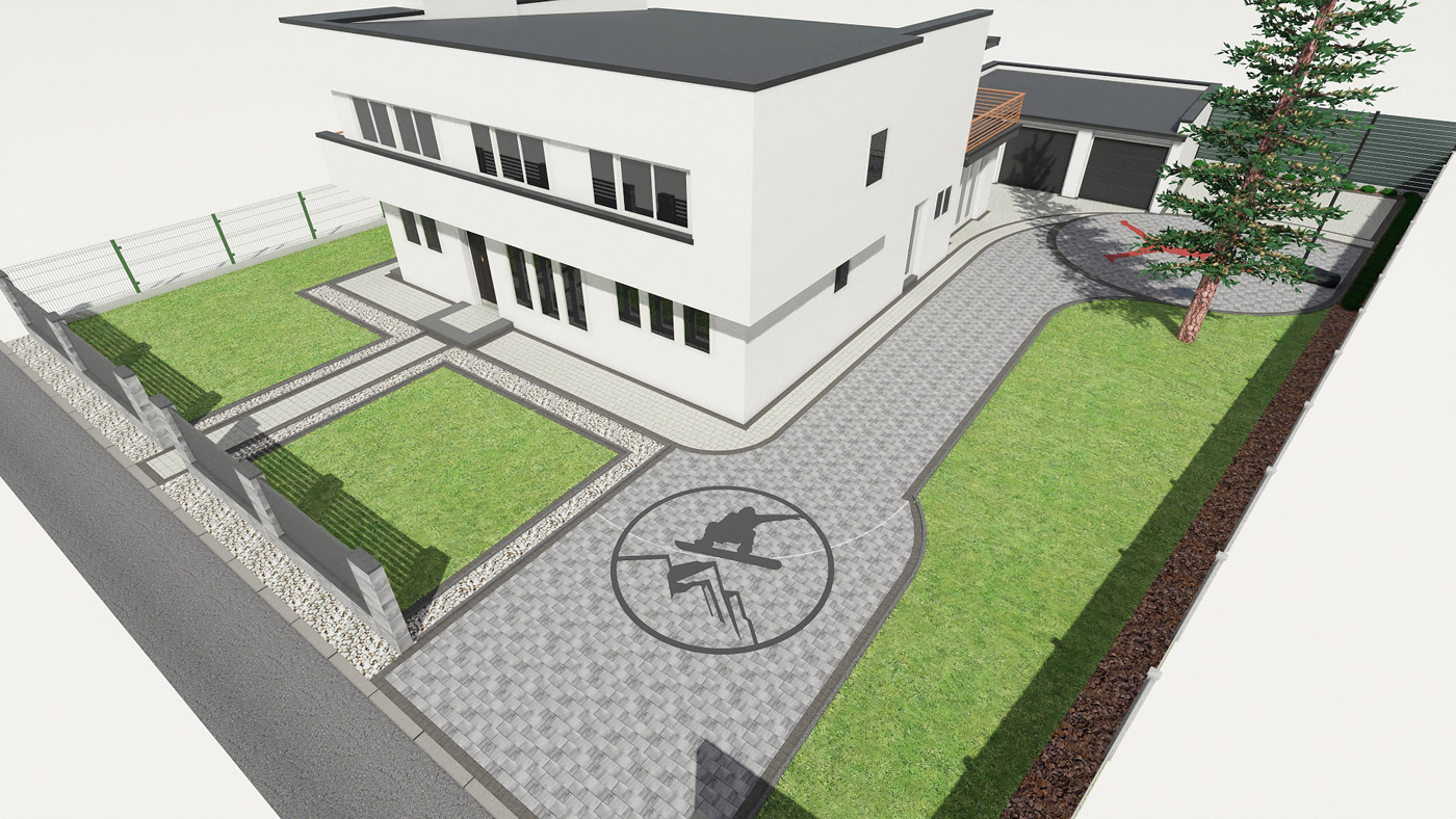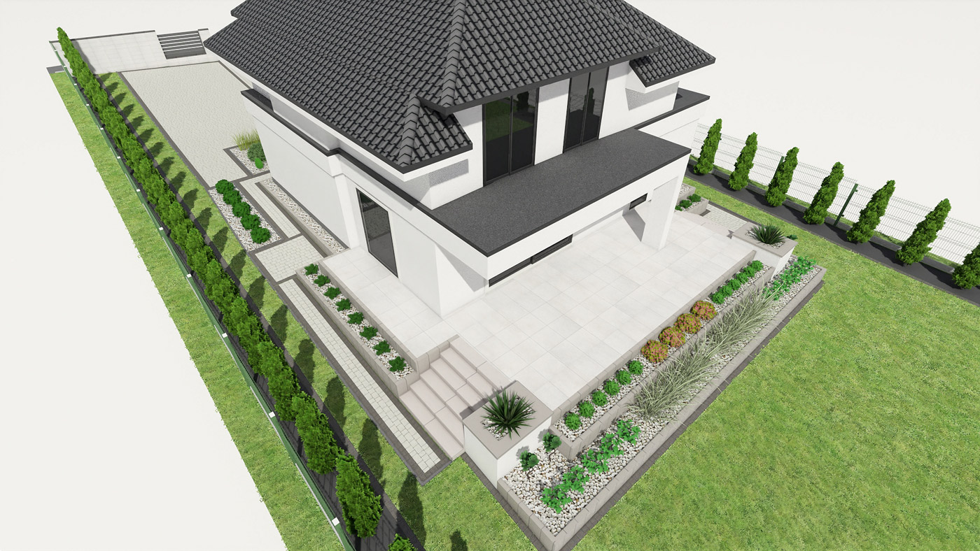 Usługi obejmują projektowanie elewacji, ogrodzeń i nawierzchni w tym tarasu, wjazdu na posesję, miejsca parkingowego, chodników i wszystkiego co związane jest z wygodnym użytkowaniem i komunikacją w obrębie Twojej działki i domu.